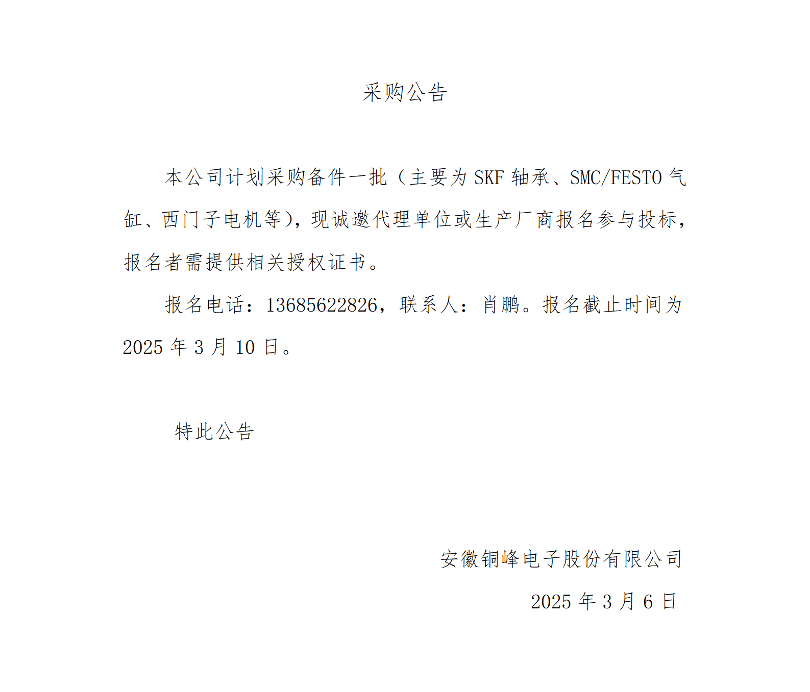 安徽銅峰電子股份有限公司新一線項目安裝招標(biāo)公告