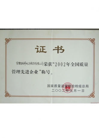 全國(guó)質(zhì)量管理先進(jìn)企業(yè)