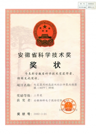 安徽省科學技術(shù)三等獎