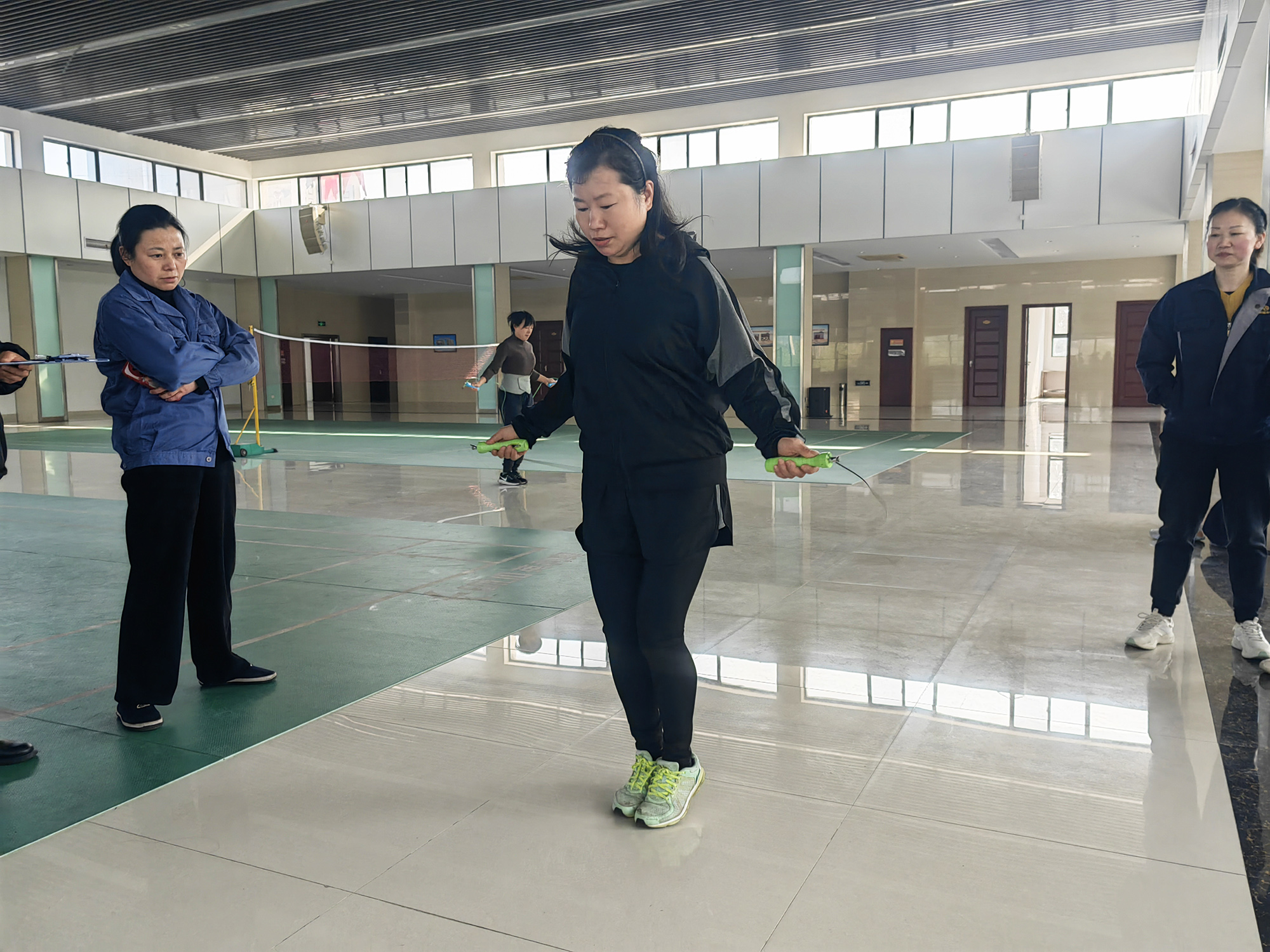 本次“三八節(jié)”女工文體活動(dòng)共設(shè)置一分鐘單搖、踢毽子、三分鐘十人八字跳三個(gè)比賽項(xiàng)目,共有各單位選送的80余名女職工參加。按比賽規(guī)則,參賽選手要在規(guī)定時(shí)間內(nèi),以個(gè)人競(jìng)速、集體協(xié)作方式完成相應(yīng)比賽。比賽中大家相互鼓勵(lì)、相互激勵(lì)、相互幫助,“跳”出活力,“繩”采飛揚(yáng),氣氛熱烈。選手們有節(jié)奏的跳動(dòng)聲、隊(duì)員們的加油喝彩聲,讓公司女工們?cè)谙硎鼙荣惖耐瑫r(shí),也進(jìn)一步砥礪意志,增強(qiáng)團(tuán)隊(duì)精神。經(jīng)過(guò)有序角逐,一分鐘單搖和踢毽子項(xiàng)目各決出一等獎(jiǎng)1名、二等獎(jiǎng)2名、三等獎(jiǎng)3名,三分鐘十人八字跳項(xiàng)目分別決出一、二、三等獎(jiǎng)各1名。